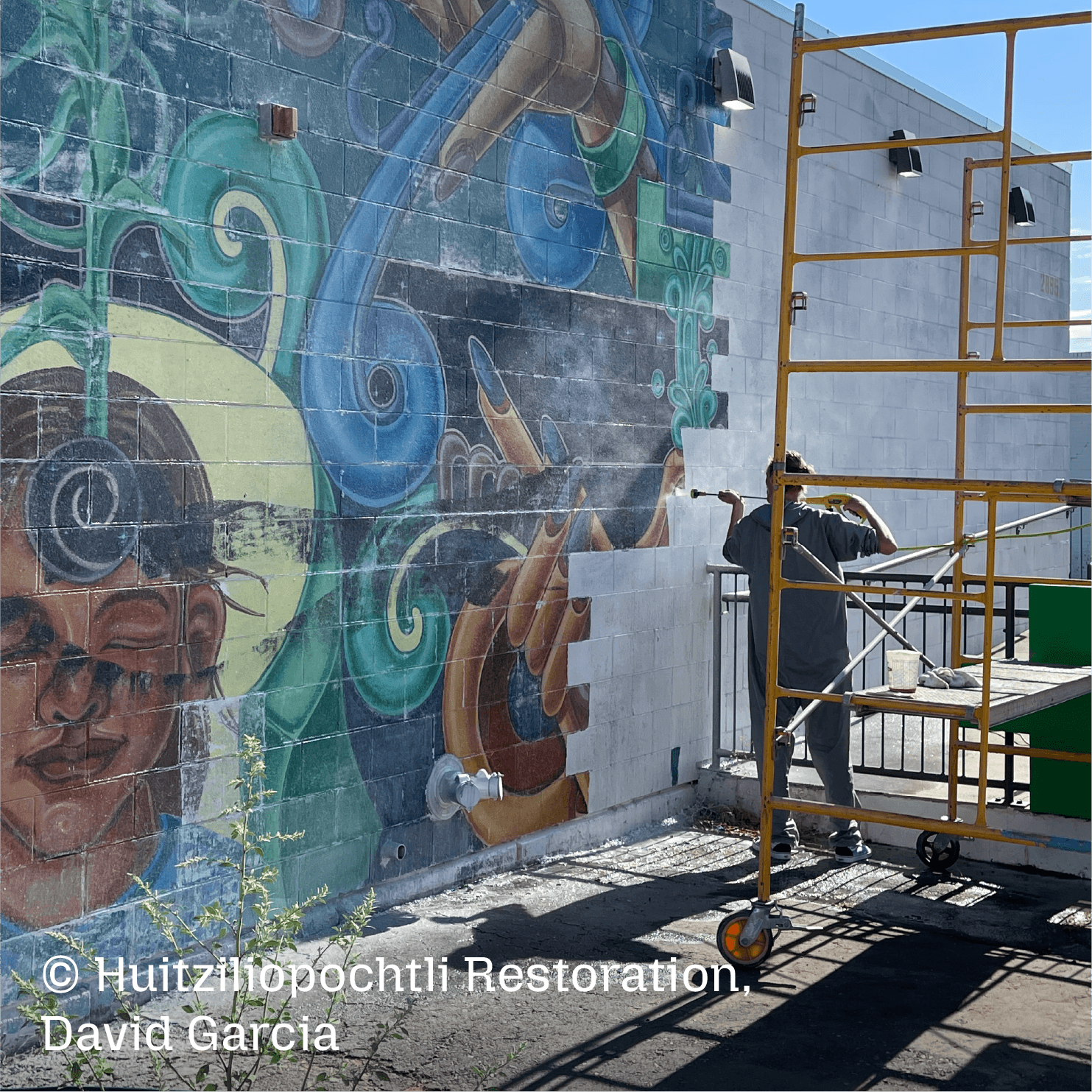 As years passed, some of the historic murals across Colorado faded, deteriorated, or were painted over. In 2018 we launched a grassroots initiative, the Chicana/o/x Murals of Colorado Project (CMCP), to restore and protect them. This work brings together communities, artists, and building owners to care for the murals and their histories, including the restoration of Urban Dope, Rural Hope, on Denver’s West Side —the largest community mural in Colorado when it was first painted in 1976.