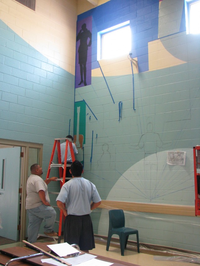 Home > Murals > Bernalillo County Youth Services Center, Albuquerque, NM – “Positive Perspectives Create Better Choices” 25′ x 20′ > Mural in process