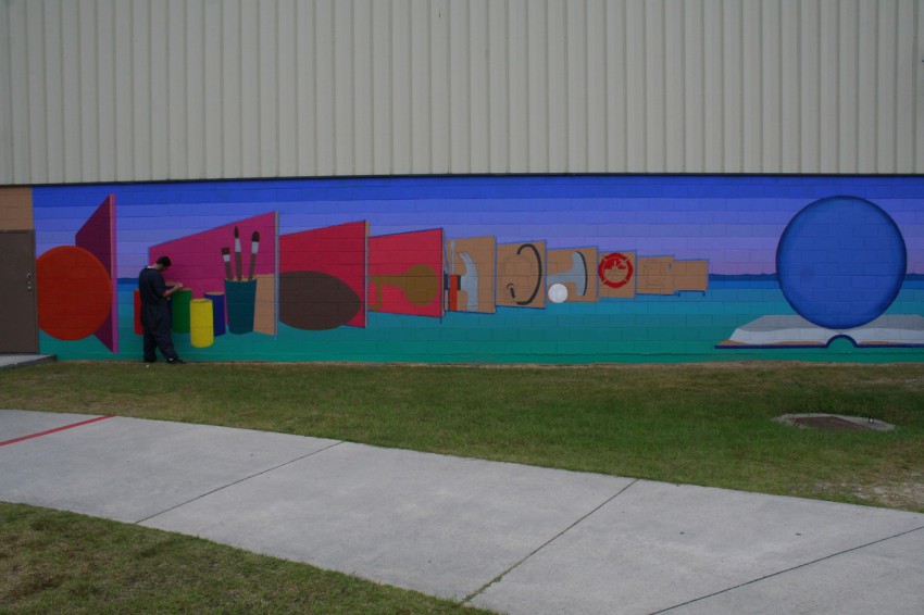 Home > Murals > Eastman Youth Detention Center, Eastman, GA – “The World is Our Classroom” 10′ x 100′ > 10′ x 100′ Mural at Eastman YDC