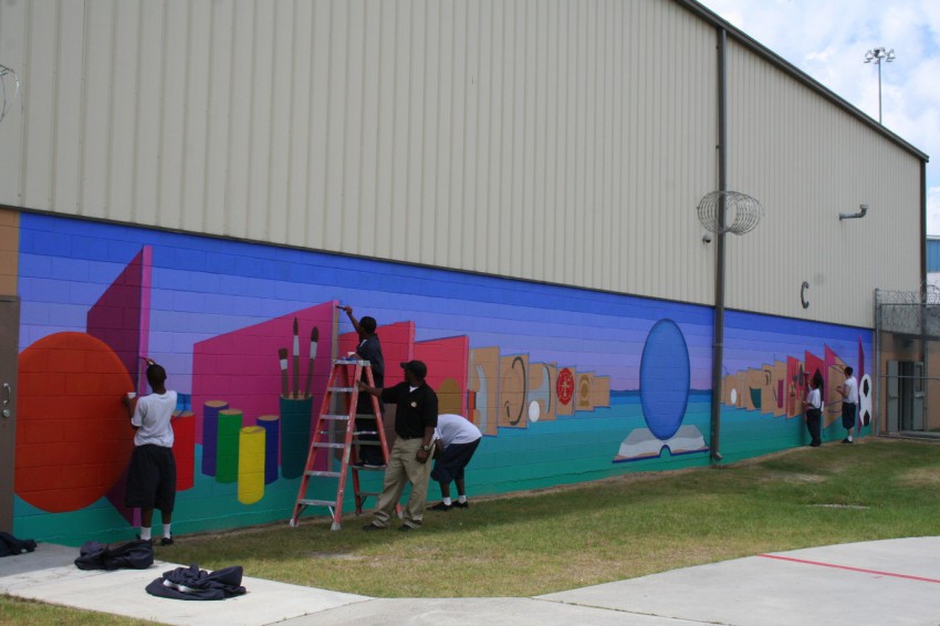 Home > Murals > Eastman Youth Detention Center, Eastman, GA – “The World is Our Classroom” 10′ x 100′ > Mural Process
