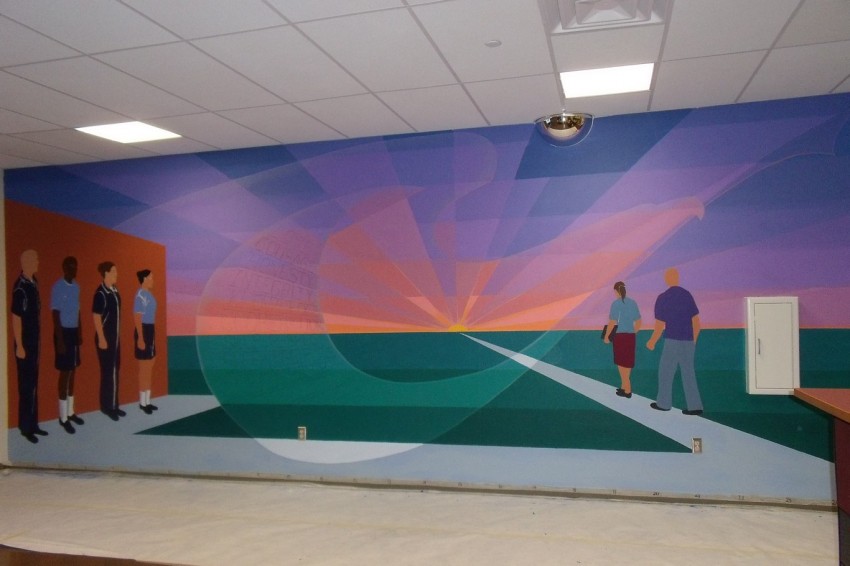 Home > Murals > Judge Enrique H. Pena Juvenile Justice Center, El Paso, TX – “Positive Thoughts to a brighter Future” 10′ x 26′ > Mural 1 in process